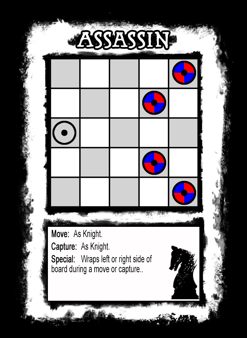 Rogue Chess uses cards to modify the move and capture of chess pieces. Each card is specific to a certain chess piece and when played will modify that piece's move, capture, or add a special effect. Every round a player may use a card or move as normal. Once the card is played, the player discards it and draws a new one.